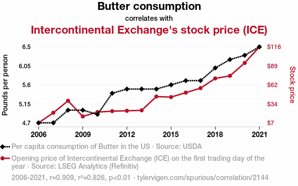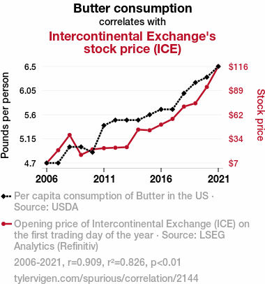 - The spurious research paper: Butter Up or Butter Down: Uncovering the Churn in Intercontinental Exchange's Stock Price