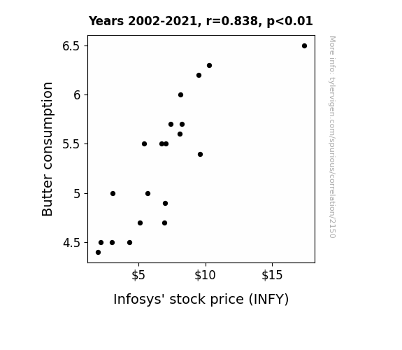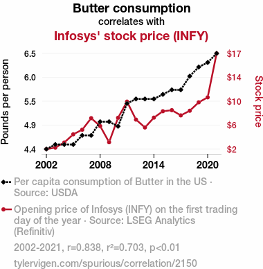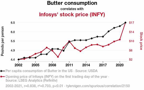 - The spurious research paper: Butter Up INFY: A Sticky Correlation Coefficient Analysis