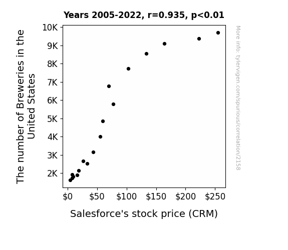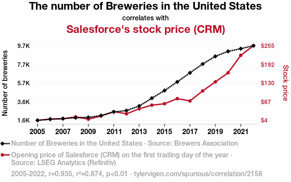 - The spurious research paper: Pouring Over Data: The Hoppy Connection Between Breweries and Salesforce's Stock Price