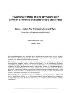 Pouring Over Data: The Hoppy Connection Between Breweries and Salesforce's Stock Price The Journal of Fermentation Finance Jan 2024 Reminder: This paper is AI-generated. Not real! |