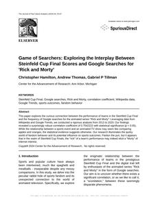 Game of Searchers: Exploring the Interplay Between Steinfeld Cup Final Scores and Google Searches for 'Rick and Morty' The Journal of Pop Culture Analytics Jan 2024 Reminder: This paper is AI-generated. Not real! |