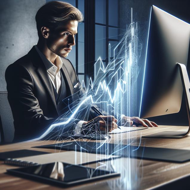 Prompt: Generate an image showing a person sitting at a modern desk, backlit by the subtle glow of a computer screen. The individual, dressed in a professional attire, appears focused on the task at hand and is typing "who is Elon Musk" into a Google search bar. Meanwhile, the computer screen displays a detailed graph representing the fluctuating stock price of West Pharmaceutical Services, creating a juxtaposition between curiosity about Elon Musk and monitoring the stock market. The scene should emphasize the person's curiosity and multi-tasking nature through their body language and the composition of the image. The depiction should include only scenes, people, and objects, it should not include text or speech bubbles.