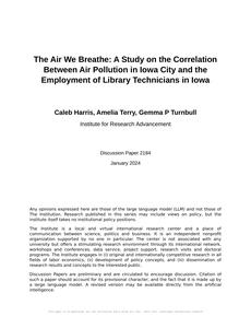 The Air We Breathe: A Study on the Correlation Between Air Pollution in Iowa City and the Employment of Library Technicians in Iowa Journal of Environmental Studies and Occupational Trends Jan 2024 Reminder: This paper is AI-generated. Not real! |