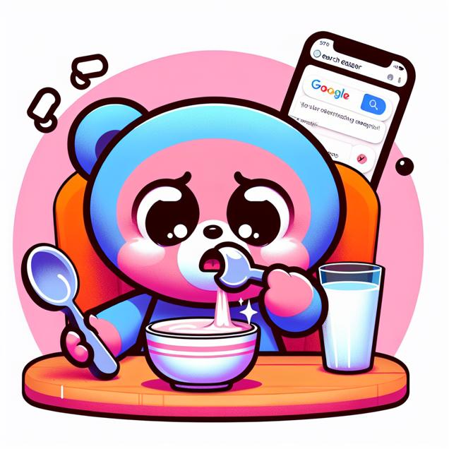 ChatGPT: Generate an image of a whimsical scene featuring a character sitting at a table with a spoon in one hand, savoring a cup of yogurt. The character should be depicted using cute and cuddly cartoon graphics. In the scene, the character should also be shown using a phone to search "i cant even" on Google, with an expression of exasperation or disbelief. The overall image should be playful and engaging, evoking a sense of lightheartedness and humor.