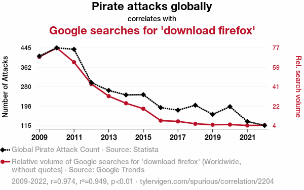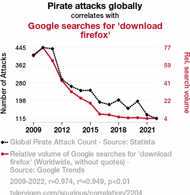 - The spurious research paper: Ahoy, Matey! Navigating the High Seas of Internet Search Behavior: A Correlational Analysis of Pirate Attacks and Google Searches for 'Download Firefox'