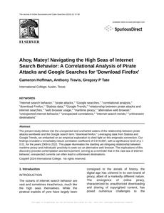 User prompt: Please provide potential search keywords for a paper titled Ahoy, Matey! Navigating the High Seas of Internet Search Behavior: A Correlational Analysis of Pirate Attacks and Google Searches for 'Download Firefox' with an abstract of The present study delves into the unexpected and uncharted waters of the relationship between pirate attacks worldwide and the Google search term "download firefox." Leveraging data from Statista and Google Trends, we embarked on an empirical exploration to shed light on this enigmatic connection. Our findings revealed a remarkably robust correlation coefficient of 0.9741997, with a significance level of p < 0.01, for the years 2009 to 2022. This paper illuminates the startling yet intriguing relationship between maritime piracy and individuals' proclivity to seek out an alternative web browser. The implications of this discovery provoke contemplation and bemusement, serving as a reminder that in the vast sea of internet behavior, unexpected currents can often lead to unforeseen destinations.