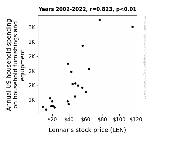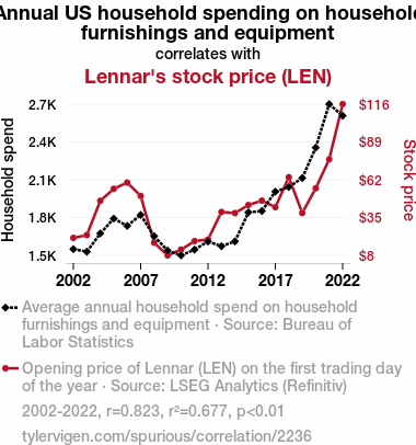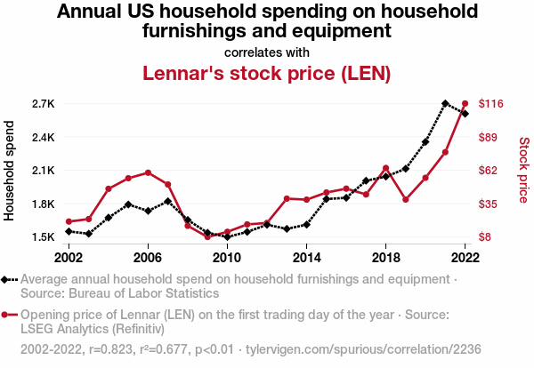 - The spurious research paper: Chairs, Wares, and Lennar's Shares: Exploring the Relationship Between US Household Spending on Furnishings and Equipment and LEN Stock Price