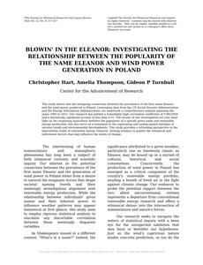 Blowin' in the Eleanor: Investigating the Relationship Between the Popularity of the Name Eleanor and Wind Power Generation in Poland The Journal of Quirky Connections Jan 2024 Reminder: This paper is AI-generated. Not real! |