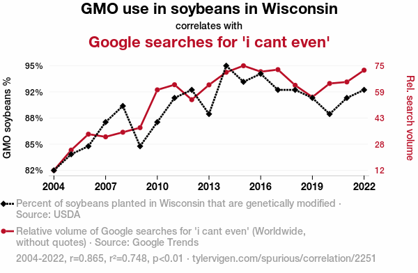 Genetically Modified Soybeans in Wisconsin and the Goofy Google Search for 'I Can't Even': A Gleeful Glimpse into Correlation