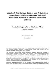 "Leewhat? The Curious Case of Lee: A Statistical Analysis of Its Effects on Career/Technical Education Teachers in Montana Secondary Schools"