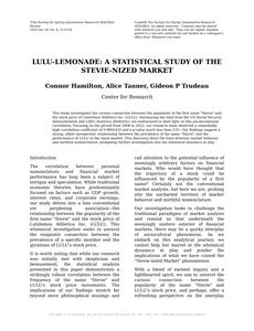 Please draft the title and abstract of an academic research paper presenting the findings of the connection between Popularity of the first name Stevie and Lululemon's stock price (LULU). Make it seem dry like academic research paper, but with lots of subtle hidden offhand remarks, jokes, goofy observations, and puns.