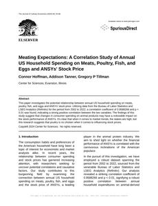Meating Expectations: A Correlation Study of Annual US Household Spending on Meats, Poultry, Fish, and Eggs and ANSYs' Stock Price The Journal of Culinary Economics Jan 2024 Reminder: This paper is AI-generated. Not real! |
