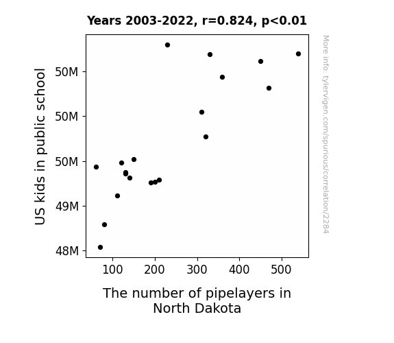 - The spurious research paper: Digging Deeper: The Unearthed Link between U.S. Public School Kids and North Dakota Pipelayers