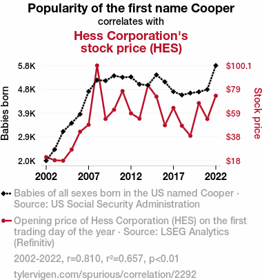 - The spurious research paper: The Cooper Connection: Assessing the Impact of the Name Cooper on Hess Corporation's Stock Price