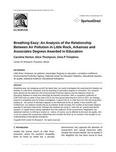 Breathing Easy: An Analysis of the Relationship Between Air Pollution in Little Rock, Arkansas and Associates Degrees Awarded in Education The Journal of Environmental Education Research Jan 2024 Reminder: This paper is AI-generated. Not real! |