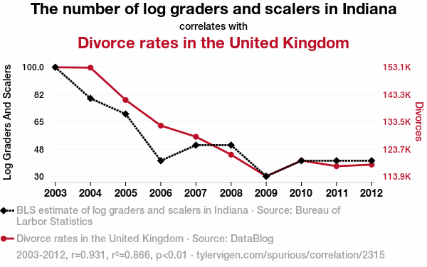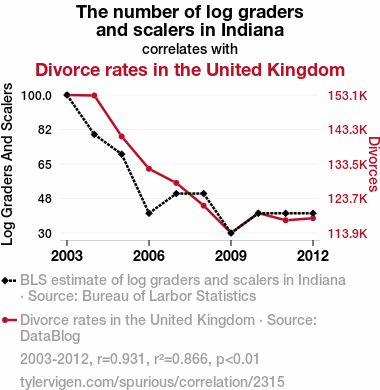 log graders, scalers, labor market analytics, divorce rates, correlation coefficient, Bureau of Labor Statistics, DataBlog, Indiana, United Kingdom, labor quantity, divorce futility