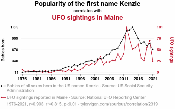 "Kenzie" popularity, UFO sightings, Maine, correlation study, statistics, US Social Security Administration, National UFO Reporting Center, extraterrestrial visitors, human nomenclature, inexplicable aerial phenomena