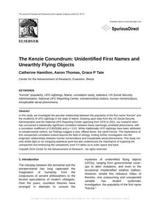 Please draft the title and abstract of an academic research paper presenting the findings of the connection between Popularity of the first name Kenzie and UFO sightings in Maine. Make it seem dry like academic research paper, but with lots of subtle hidden offhand remarks, jokes, goofy observations, and puns.