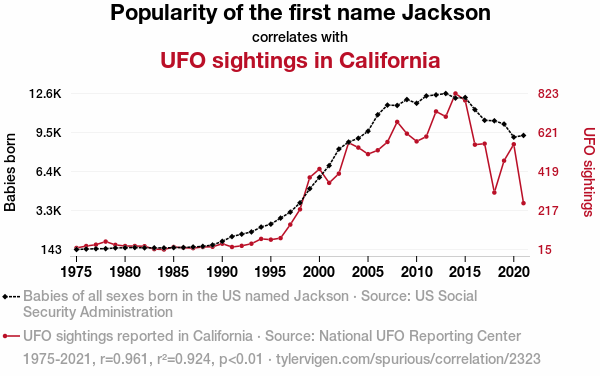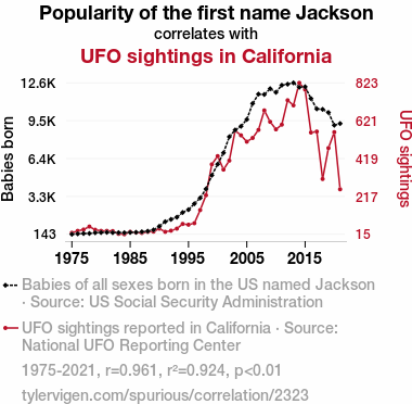 - The spurious research paper: The Puzzling Popularity of the Name Jackson and Perplexing UFO Sightings in California: A Correlation Analysis