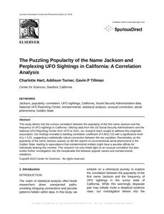 The Puzzling Popularity of the Name Jackson and Perplexing UFO Sightings in California: A Correlation Analysis Journal of Anomalous Trends and Phenomena Jan 2024 Reminder: This paper is AI-generated. Not real! |
