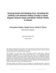 User prompt: Please provide potential search keywords for a paper titled Scoring Goals and Stealing Cars: Unveiling the Unlikely Link between Sidney Crosby's Career Regular Season Goals and Motor Vehicle Thefts in Hawaii with an abstract of This paper examines the peculiar relationship between the career regular season goals scored by NHL star Sidney Crosby and the incidence of motor vehicle thefts in the tropical paradise of Hawaii. Leveraging data from the National Hockey League (NHL) and the FBI Criminal Justice Information Services, we uncover a surprising correlation that surpasses the realm of sports analytics. Our findings reveal a correlation coefficient of 0.8768760 and a p-value less than 0.01, indicating a statistically significant relationship between Crosby's goal-scoring prowess and the frequency of car thefts in the island state from 2002 to 2022. While these results may appear absurd at first glance, we delve into potential explanations for this unlikely correlation and propose further research avenues to explore the underlying mechanisms. By shedding light on this unexpected correlation, we hope to both entertain and inspire future research in the intriguing intersection of professional sports and crime trends.