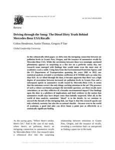 - The spurious research paper: Driving through the Smog: The Diesel Dirty Truth Behind Mercedes-Benz USA Recalls