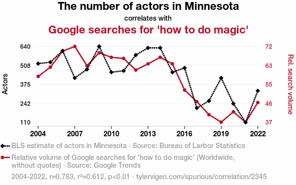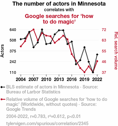 - The spurious research paper: The Thespians of Minnesota: A Spellbinding Correlation Between Actor Numbers and Searches for 'How to Do Magic'