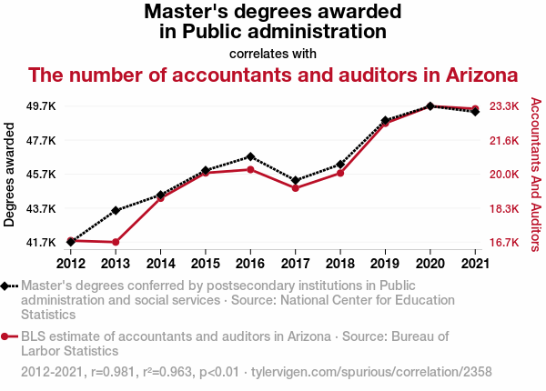 In essence, our results not only affirm the serious statistical significance of the connection between Master's degrees in Public Administration and the number of accountants and auditors in Arizona, but also add a dash of lighthearted scientific merriment to the scholarly milieu, illuminating the amusing yet undeniable interplay between administrative expertise and financial stewardship. And who said science and research couldn't have a waltz with whimsy?