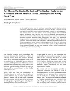 Say Cheese: The Gouda, The Bad, and The Nasdaq - Exploring the Correlation Between American Cheese Consumption and NDAQ Stock Price The Dairy Economist Jan 2024 Reminder: This paper is AI-generated. Not real! |