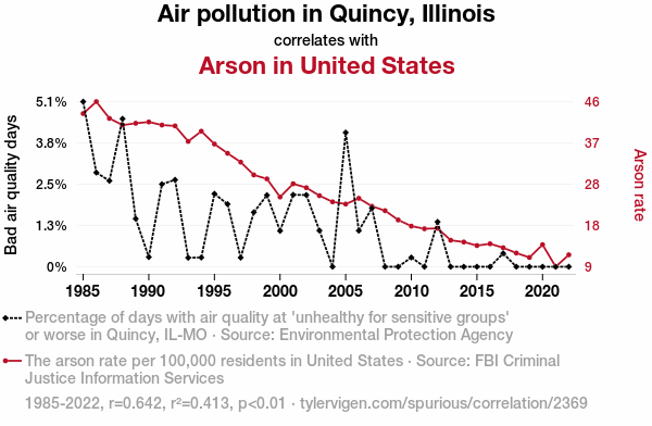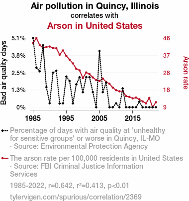 - The spurious research paper: The Fiery Connection: Air Pollution in Quincy, Illinois and Arson in the United States