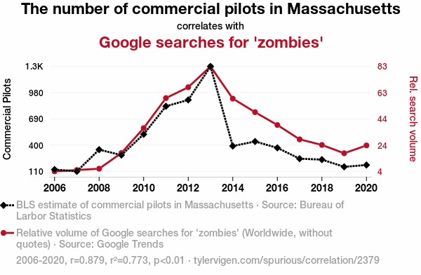 "zombie searches commercial pilots," "Massachusetts commercial pilots," "Google Trends zombies," "correlation commercial pilots zombies," "Bureau of Labor Statistics commercial pilots," "public interest undead," "Google Trends correlation coefficient," "zombie fascination Massachusetts," "commercial pilots Massachusetts," "undead Google searches"