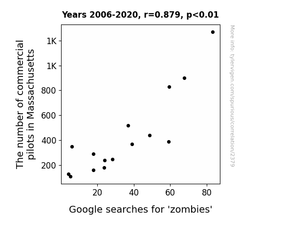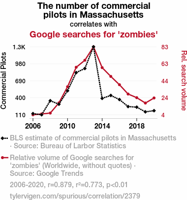 - The spurious research paper: Zombie Searches and the Skies: A Study on the Correlation Between Commercial Pilots in Massachusetts and Interest in the Undead