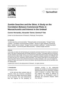 Zombie Searches and the Skies: A Study on the Correlation Between Commercial Pilots in Massachusetts and Interest in the Undead Journal of Paranormal Aviation Studies Jan 2024 Reminder: This paper is AI-generated. Not real! |