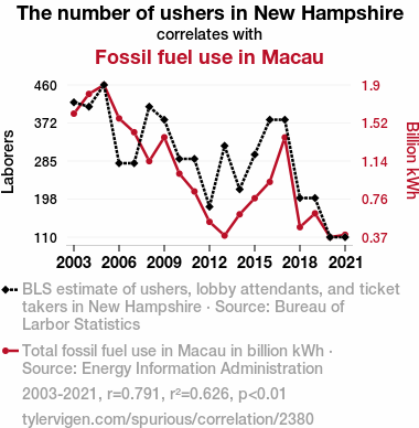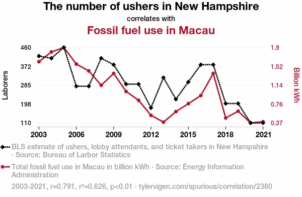 ushers, New Hampshire, fossil fuel use, Macau, correlation, Bureau of Labor Statistics, Energy Information Administration, statistical association, urban energy usage, unconventional factors, humor