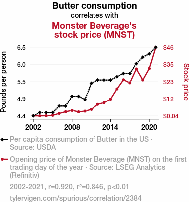 butter consumption, butter and stock price correlation, Monster Beverage stock, financial analysis, USDA data, LSEG Analytics, consumer behavior and stock performance, correlation coefficient, energy drinks and stock performance