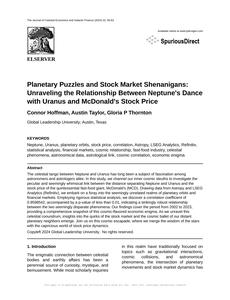 User prompt: Please provide potential search keywords for a paper titled Planetary Puzzles and Stock Market Shenanigans: Unraveling the Relationship Between Neptune's Dance with Uranus and McDonald's Stock Price with an abstract of The celestial tango between Neptune and Uranus has long been a subject of fascination among astronomers and astrologers alike. In this study, we channel our inner cosmic sleuths to investigate the peculiar and seemingly whimsical link between the distance separating Neptune and Uranus and the stock price of the quintessential fast-food giant, McDonald's (MCD).