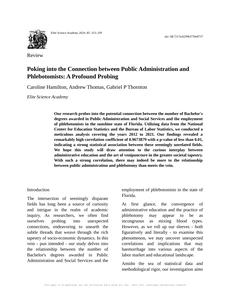 User prompt: Please provide potential search keywords for a paper titled Poking into the Connection between Public Administration and Phlebotomists: A Profound Probing with an abstract of Our research probes into the potential connection between the number of Bachelor's degrees awarded in Public Administration and Social Services and the employment of phlebotomists in the sunshine state of Florida. Utilizing data from the National Center for Education Statistics and the Bureau of Labor Statistics, we conducted a meticulous analysis covering the years 2012 to 2021. Our findings revealed a remarkably high correlation coefficient of 0.9673879 with a p-value of less than 0.01, indicating a strong statistical association between these seemingly unrelated fields. We hope this study will draw attention to the curious interplay between administrative education and the art of venipuncture in the greater societal tapestry. With such a strong correlation, there may indeed be more to the relationship between public administration and phlebotomy than meets the vein.
