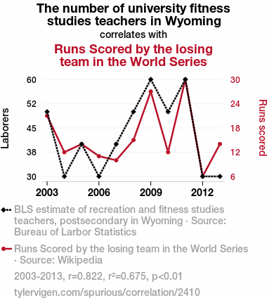 - The spurious research paper: Fit to Be Tied: An Analytical Examination of University Fitness Studies Teachers in Wyoming and Runs Scored by the Losing Team in the World Series