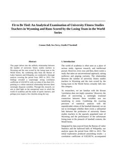 Fit to Be Tied: An Analytical Examination of University Fitness Studies Teachers in Wyoming and Runs Scored by the Losing Team in the World Series The Journal of Sport-Science Quirks and Quandaries Jan 2024 Reminder: This paper is AI-generated. Not real! |
