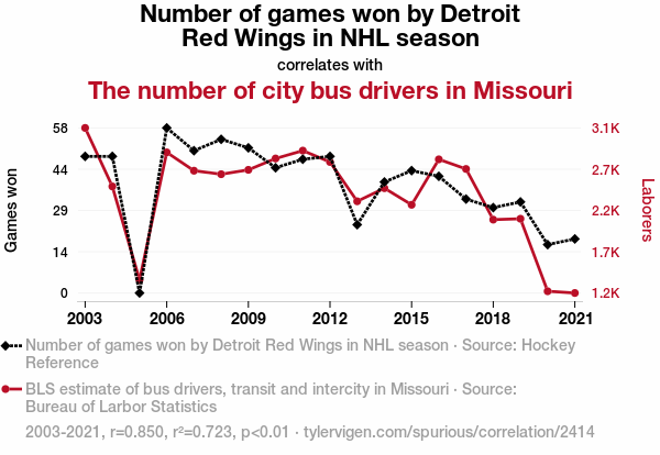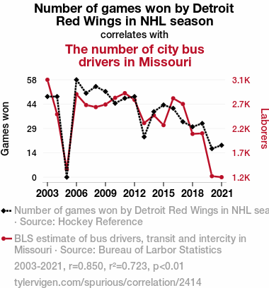 - The spurious research paper: Stick to the Rink: The Link Between Detroit Red Wings' Wins and Missouri Bus Driving Shifts