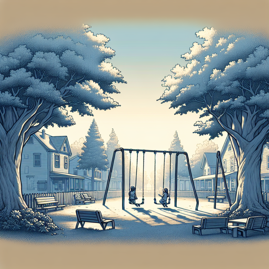 Prompt: Generate an image of a serene playground in a quiet Illinois town, surrounded by tall oak trees with leaves gently rustling in the breeze. The playground is devoid of children, and the swing sets sway gently in the absence of playful activity. The peacefulness of the scene symbolizes the decreased popularity of the name Gerard, as if the tranquility itself is evidence of the fading influence of the once prevalent name. The absence of potential fire-starters is metaphorically represented through the lack of children playing, and the sense of calm implies a decrease in the risk of arson. The visual should capture the tranquil atmosphere and reflect the extinguishing of the name Gerard's influence on the crime rates in the state. The depiction should include only scenes, people, and objects, it should not include text or speech bubbles.