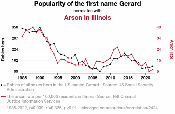 Gerard name popularity, arson incidents Illinois, name correlation arson, statistical analysis name Gerard arson, Gerard name association fires Illinois