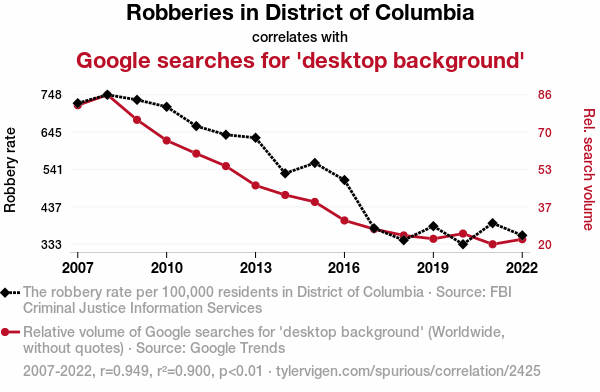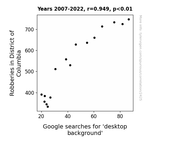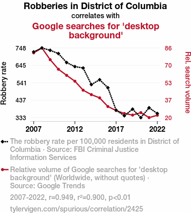 - The spurious research paper: The Desktop Bandit: Examining the Relationship Between Robberies in District of Columbia and Google Searches for 'Desktop Background'