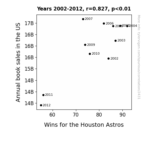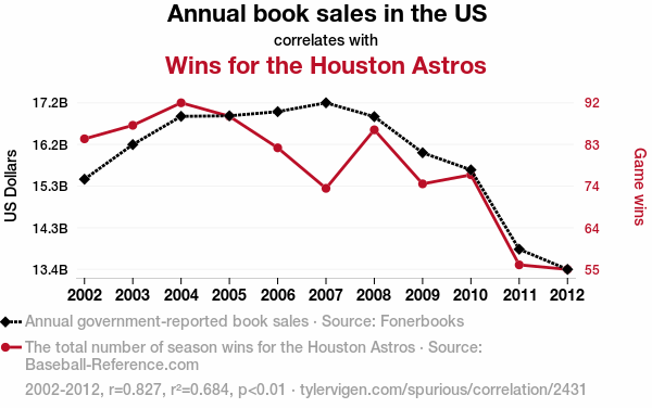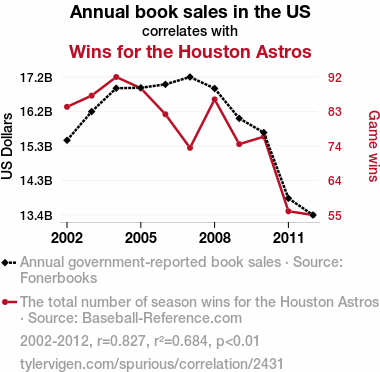 - The spurious research paper: Striking Out: The Novel Correlation Between Annual Book Sales and Wins for the Houston Astros