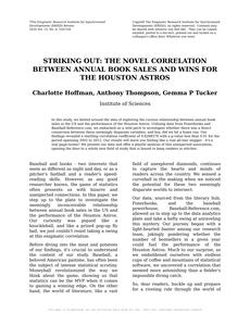 Striking Out: The Novel Correlation Between Annual Book Sales and Wins for the Houston Astros Journal of Sports Analytics and Literature Jan 2024 Reminder: This paper is AI-generated. Not real! |