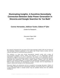 Illuminating Insights: A Sunshine-Serendipity Connection Between Solar Power Generation in Slovenia and Google Searches for 'Ice Bath' The Journal of Solar Sociology Jan 2024 Reminder: This paper is AI-generated. Not real! |