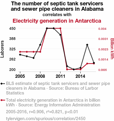- The spurious research paper: Stinky Business: The Symbiotic Relationship Between Sewage Workers in Alabama and Electricity Generation in Antarctica