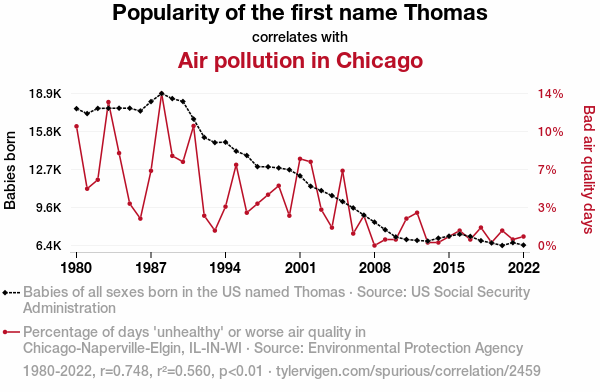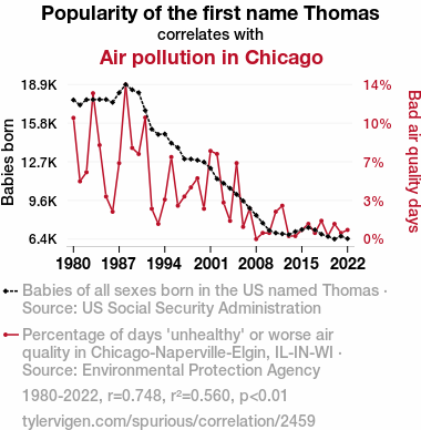 - The spurious research paper: The Thomas Theorem: Unearthing the Connection Between Name Popularity and Air Pollution in Chicago