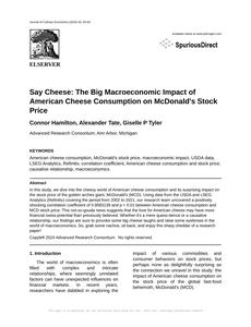 Say Cheese: The Big Macroeconomic Impact of American Cheese Consumption on McDonald's Stock Price Journal of Culinary Economics Jan 2024 Reminder: This paper is AI-generated. Not real! |