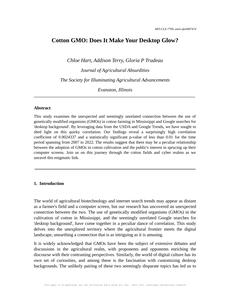 Cotton GMO: Does It Make Your Desktop Glow? Journal of Agricultural Absurdities Jan 2024 Reminder: This paper is AI-generated. Not real! |